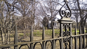 Gabriella’s hands clutched the icy iron pickets, her heart pounded as she stared at the house, hoping for a sign. Birds chirped, and wind caressed her cheek flipping her hair across her face. Nothing else moved.